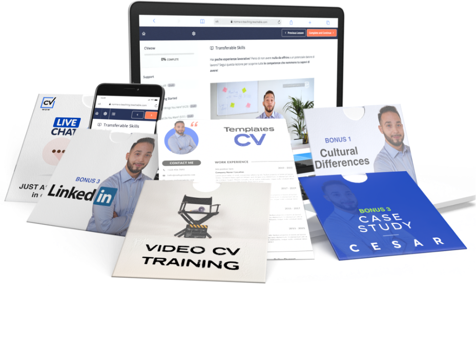 Il corso pratico step-by-step che ti accompagna dalla scrittura del tuo CV in inglese con “effetto-WOW” fino alla prima candidatura!